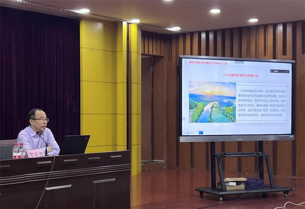 2023年3月8日下午,我校党委副书记、校长贺定修在立德楼B201会议室为我校电子信息学院师生宣讲党的二十大精神,电子信息学院全体师生通过线上线下相结合的方式参加了宣讲会。