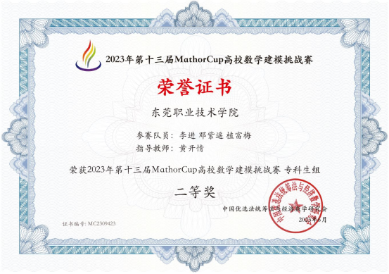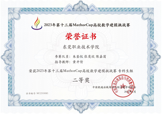 近日,2023年第十三届MathorCup高校数学建模挑战赛结果公布,我校两支队伍获得全国二等奖,三支队伍获得全国三等奖,现代工业创新实践中心黄开情老师被评为“优秀指导老师”。