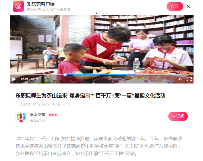 【知东莞】东职院师生为茶山送来“量身定制”“百千万·‘莞’一夏”暑期文化活动