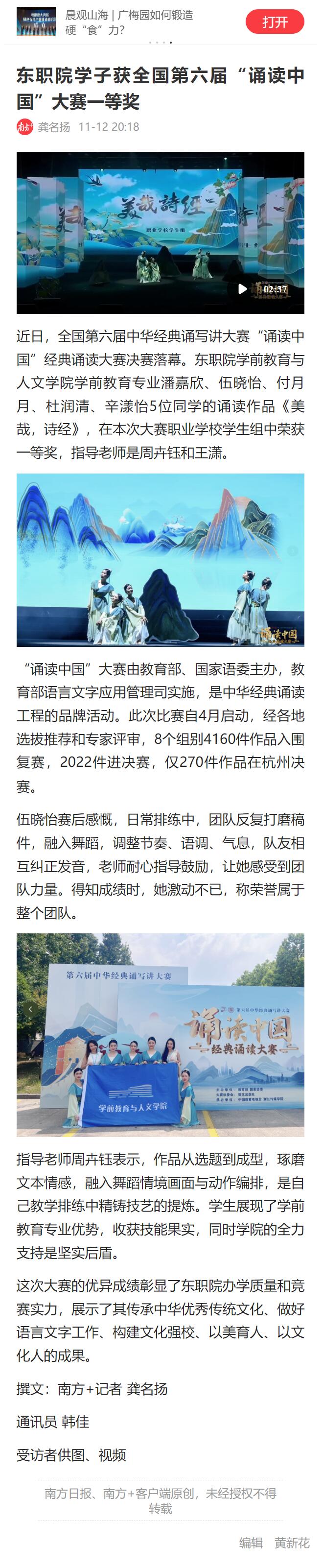 【南方+】东职院学子获全国第六届“诵读中国”大赛一等奖