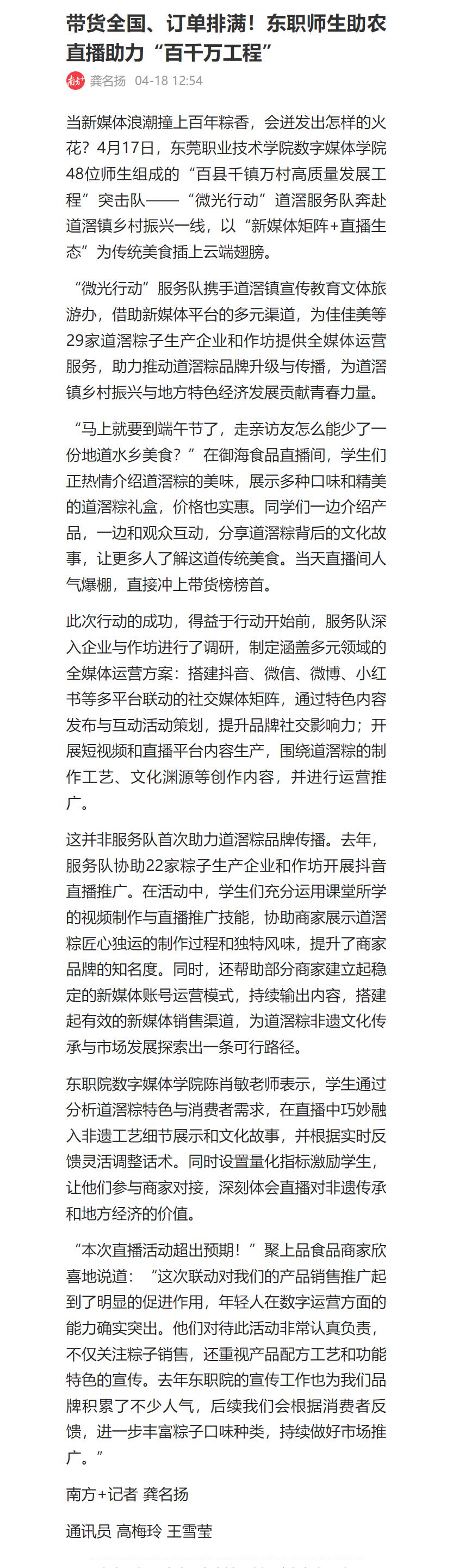 【南方+】带货全国、订单排满!东职师生助农直播助力“百千万工程”